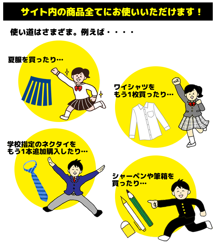 ※ 本キャンペーンは店頭でのご購入が対象です。ネット販売で新入学標準服を一式ご購入の場合は対象外です。